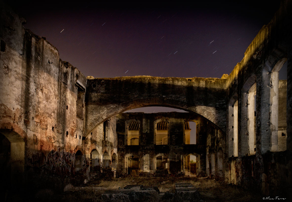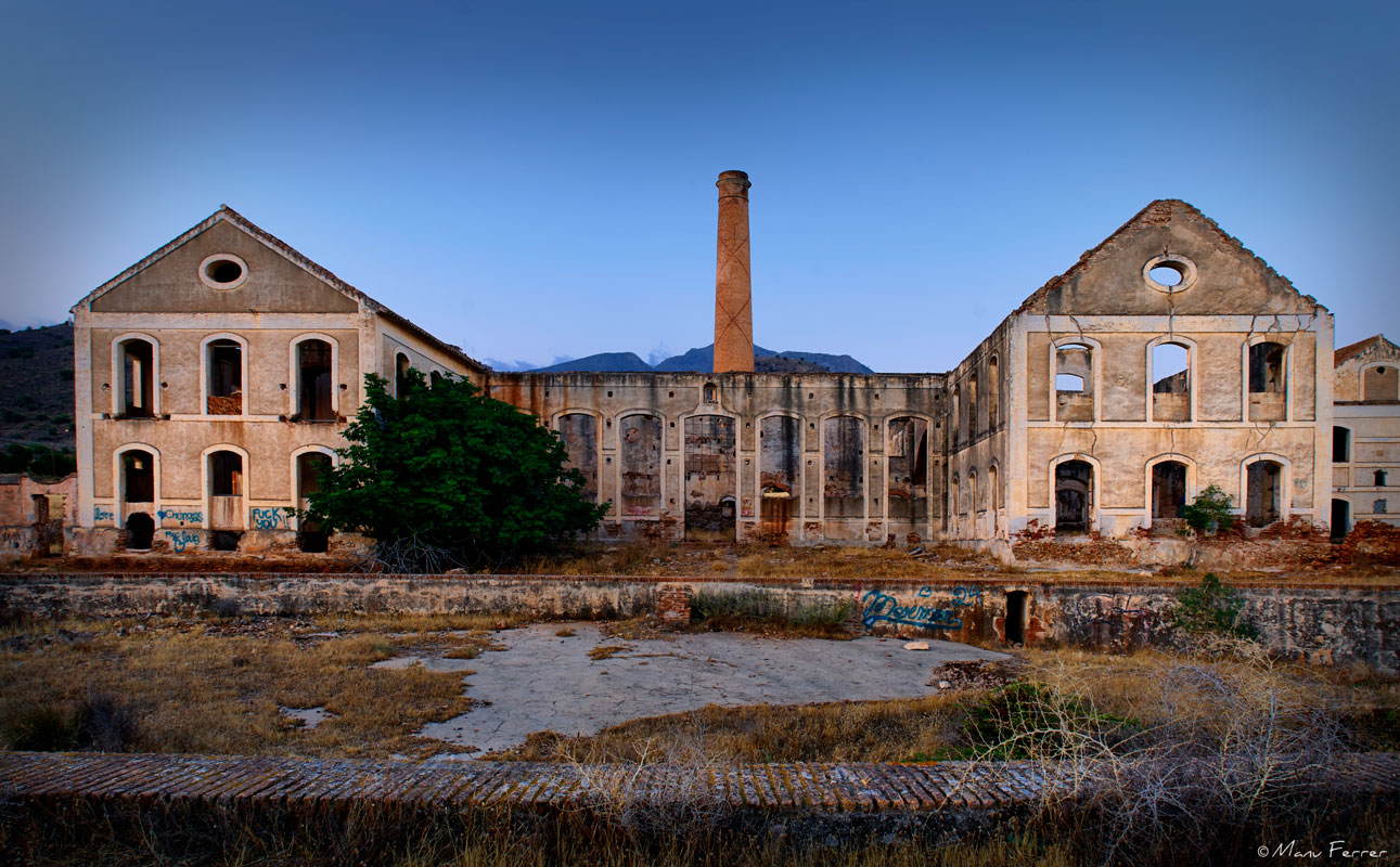 Frente a la bahía de Nerja, entre invernaderos y visible desde la carretera, destaca la torre y los restos de la antigua fábrica de azúcar de las Mercedes o San Joaquín. Construida en 1880 sirvió para dar vida y canalizar la producción de azúcar de la región. Actualmente solo quedan las estructuras de sus muros que resisten el paso del tiempo bajo la cálida luz del mediterráneo.
