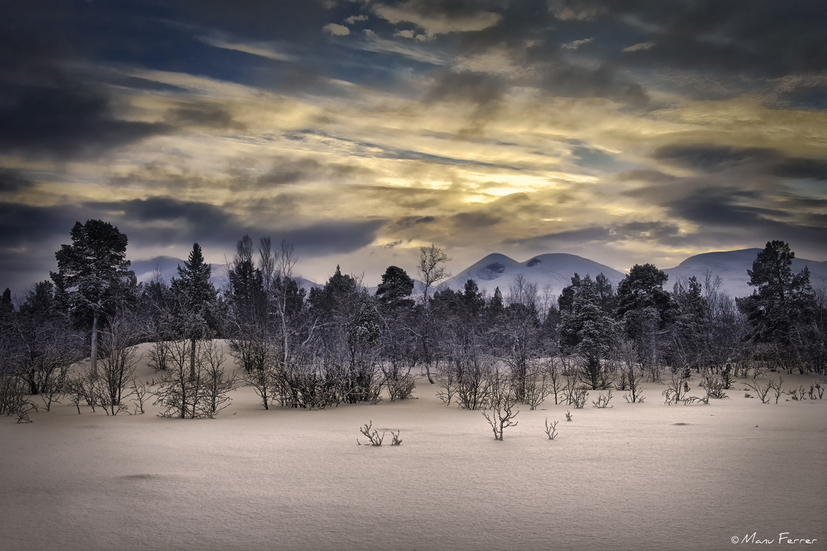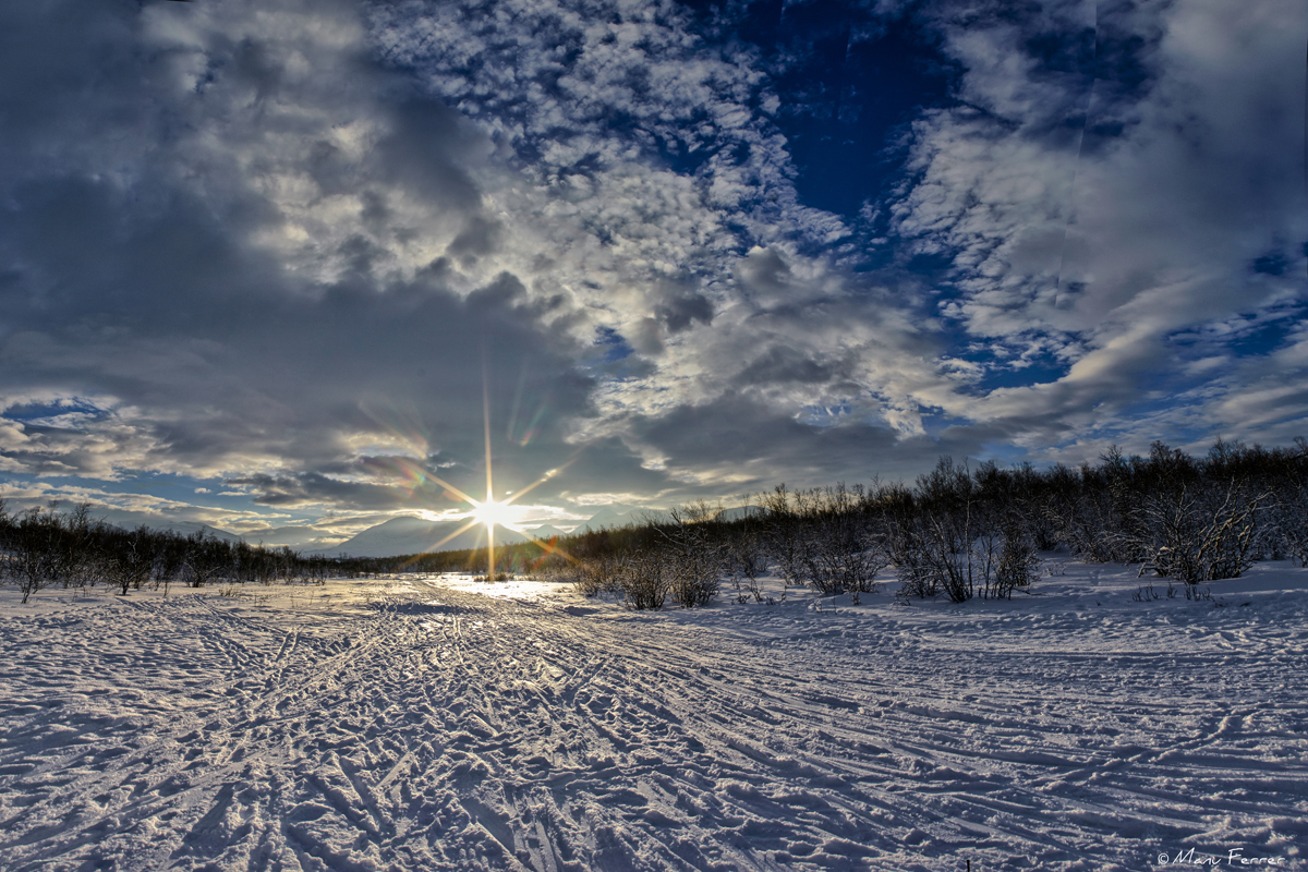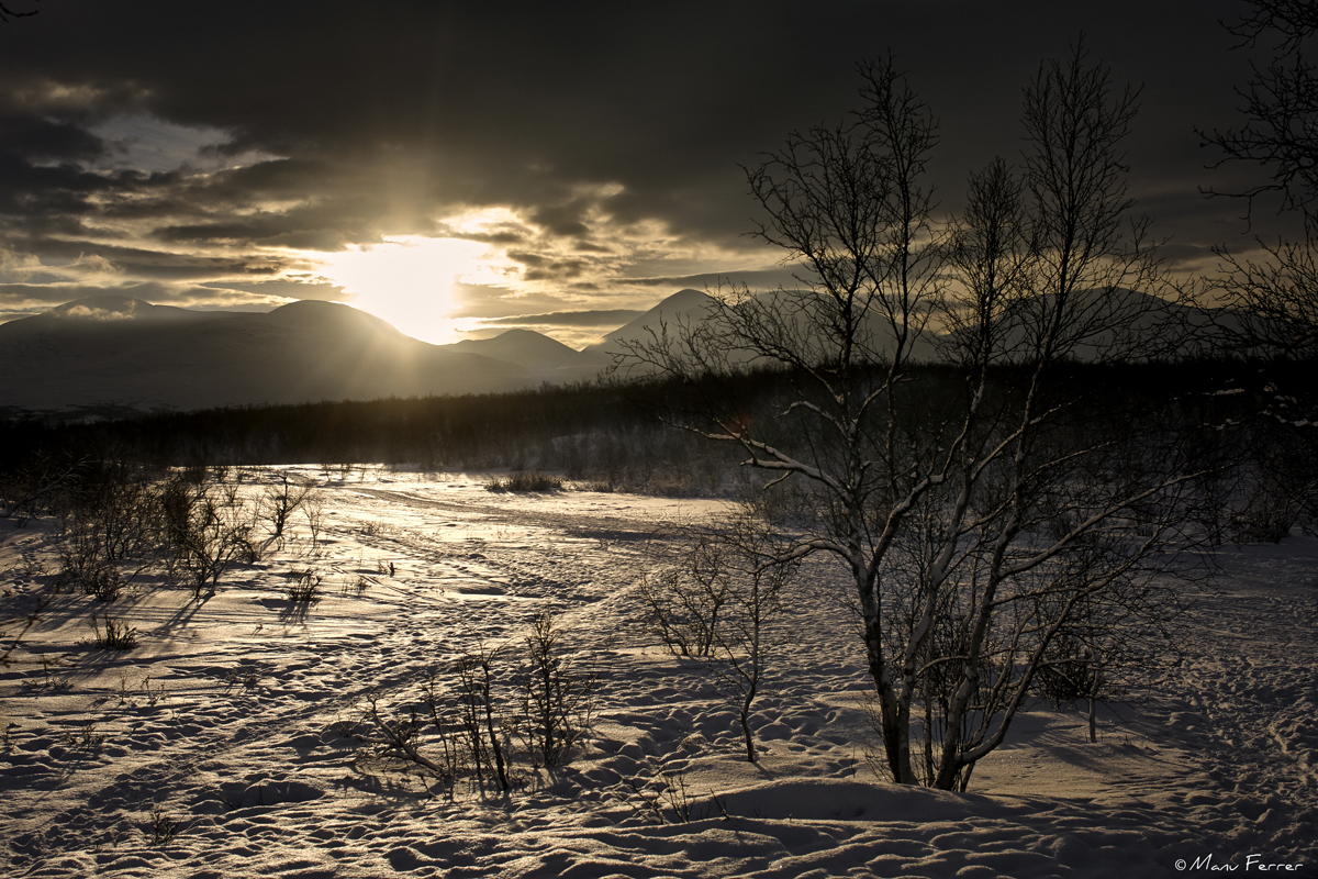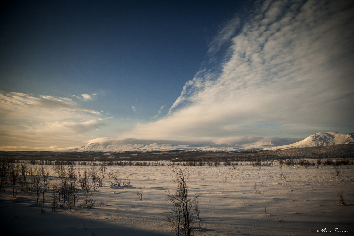 El Parque Nacional de Abisko se encuentra a 200 kms al norte del Círculo Polar Ártico, en plena Laponia sueca. Pequeño parque de 75 kms cuadrados junto al lago Tornetrask, con una minúscula aldea con parada de tren y una segunda parada a 4 kms en un alberge de turismo, punto de partida de las distintas excursiones a realizar.